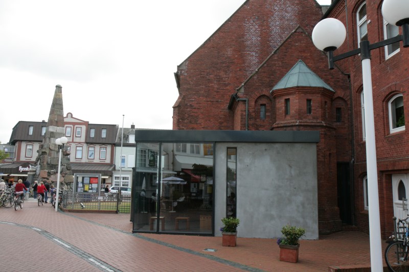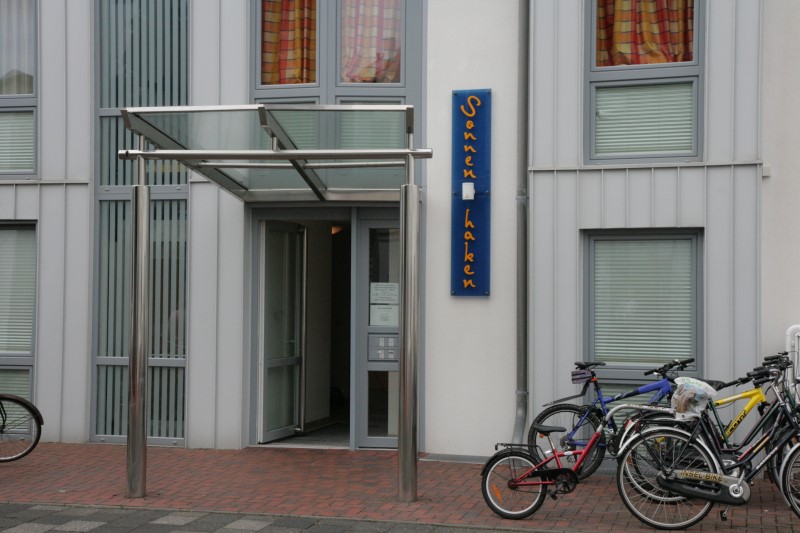 Der Schirm ist zugeklappt, in der Tasche sucht man nach dem Haustürschlüssel; währenddessen läuft das Regenwasser in den Kragen hinein. Nicht viel besser ergeht es Besuchern, die darauf warten, eingelassen zu werden.